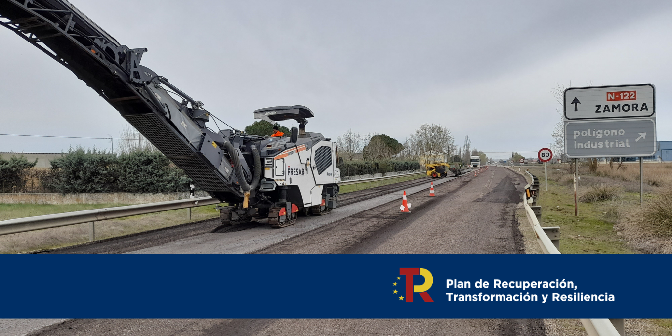 El Ministerio de Transportes y Movilidad Sostenible ha iniciado las obras de rehabilitación del firme de la N-122 en los tramos localizados entre los km 437,3 y 439,2 en el término municipal de Toro, y los km 447 y 453,6 en los términos municipales de Coreses y Zamora, en la provincia de Zamora. Se trata de unas obras que cuentan con un presupuesto de 2,59 millones de euros, IVA incluido, financiado con cargo a los fondos europeos del Plan de Recuperación, Transformación y Resiliencia (PRTR).